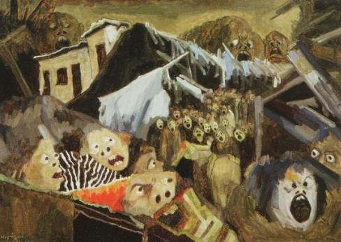 de Chagall. Su sueño es más bien una pesadilla, un drama conjurado